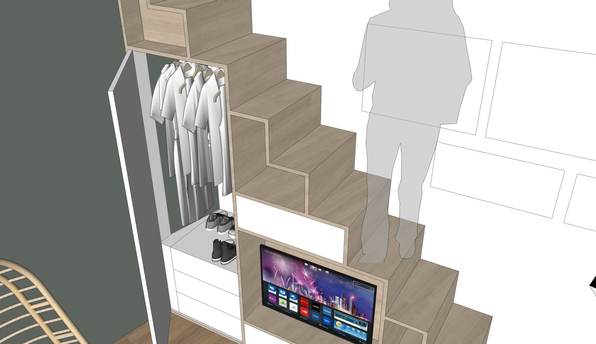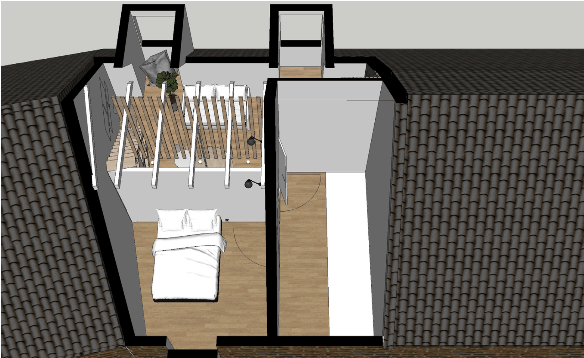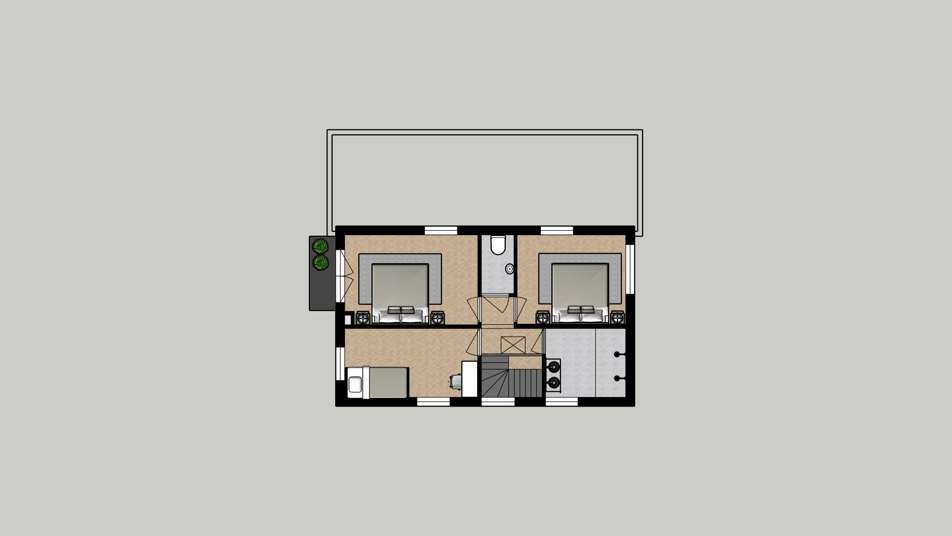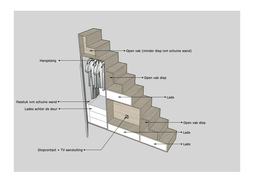 Voor een woning in Vleuten heeft LAUDE gekeken naar de diverse mogelijkheden om een extra slaapkamer op de bovenste etage te creëren. Door de hoogte van de ruimte optimaal te benutten en slim met de restruimte om te gaan is dat gelukt. Door maattekeningen aan te leveren, inclusief extra aandachtspunten zoals nieuwe lichtpunten, stopcontacten en overige details, is de verbouwing goed voorbereid en kan de aannemer direct van start.