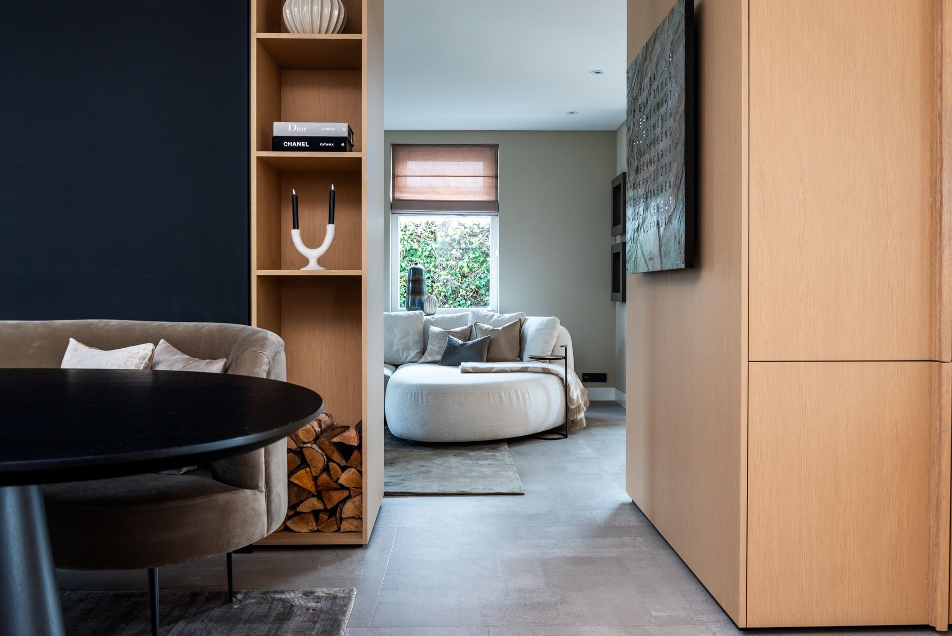 Het moodboard hielp om de gewenste sfeer en stijl helder te krijgen en vormde het fundament voor de visuele keuzes die we daarna samen met de opdrachtgever hebben gemaakt. Het 3D-ontwerp vormde de basis voor het verdere proces en zorgde ervoor dat we het interieur op een efficiënte en doordachte manier konden realiseren. Het interieur combineert een eigentijdse stijl met praktische elementen, zodat het zowel functioneel als uitnodigend is. Het eindresultaat is een ruimte die niet alleen esthetisch aantrekkelijk is, maar ook een warme en comfortabele beleving biedt. Dit project is een mooi voorbeeld van hoe LAUDE interieurs op maat realiseert, met oog voor detail en de wensen van de klant.
