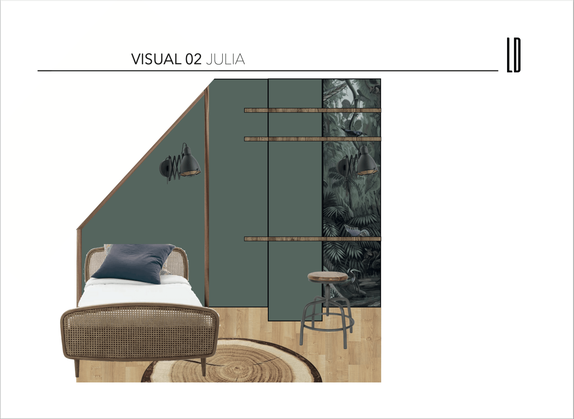 Voor Julia (11 jaar) een knusse jungle kamer, voor haar zusje Phileine (8 jaar) een rustige chill kamer. Deze meiden weten wat ze leuk vinden. Samen hebben we er een duidelijk plan van gemaakt zodat het gezin een overzicht kon maken van de stappen die gezet moeten worden voor het realiseren ervan. Door rekening te houden met de wensen en creatieve oplossingen aan te dragen is dit plan een mooi uitgangspunt voor de aankomende verbouwing.