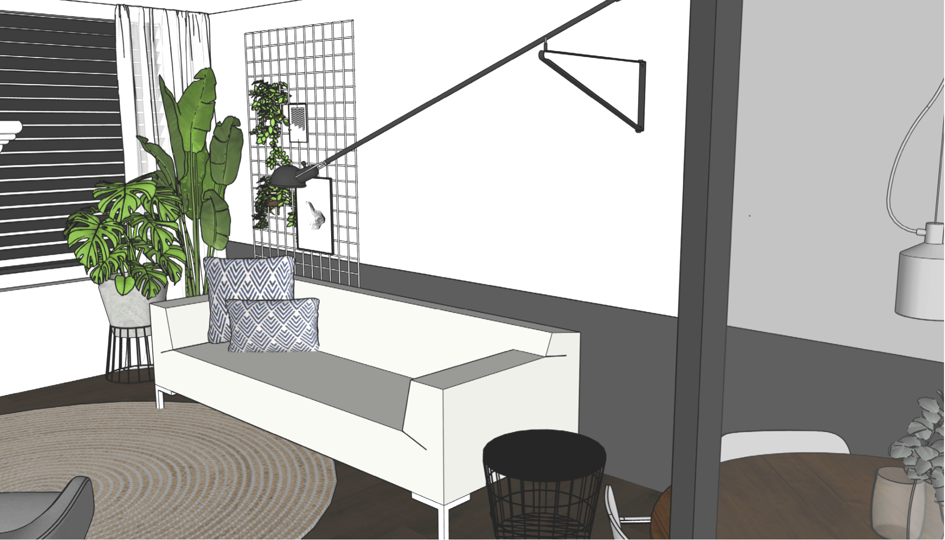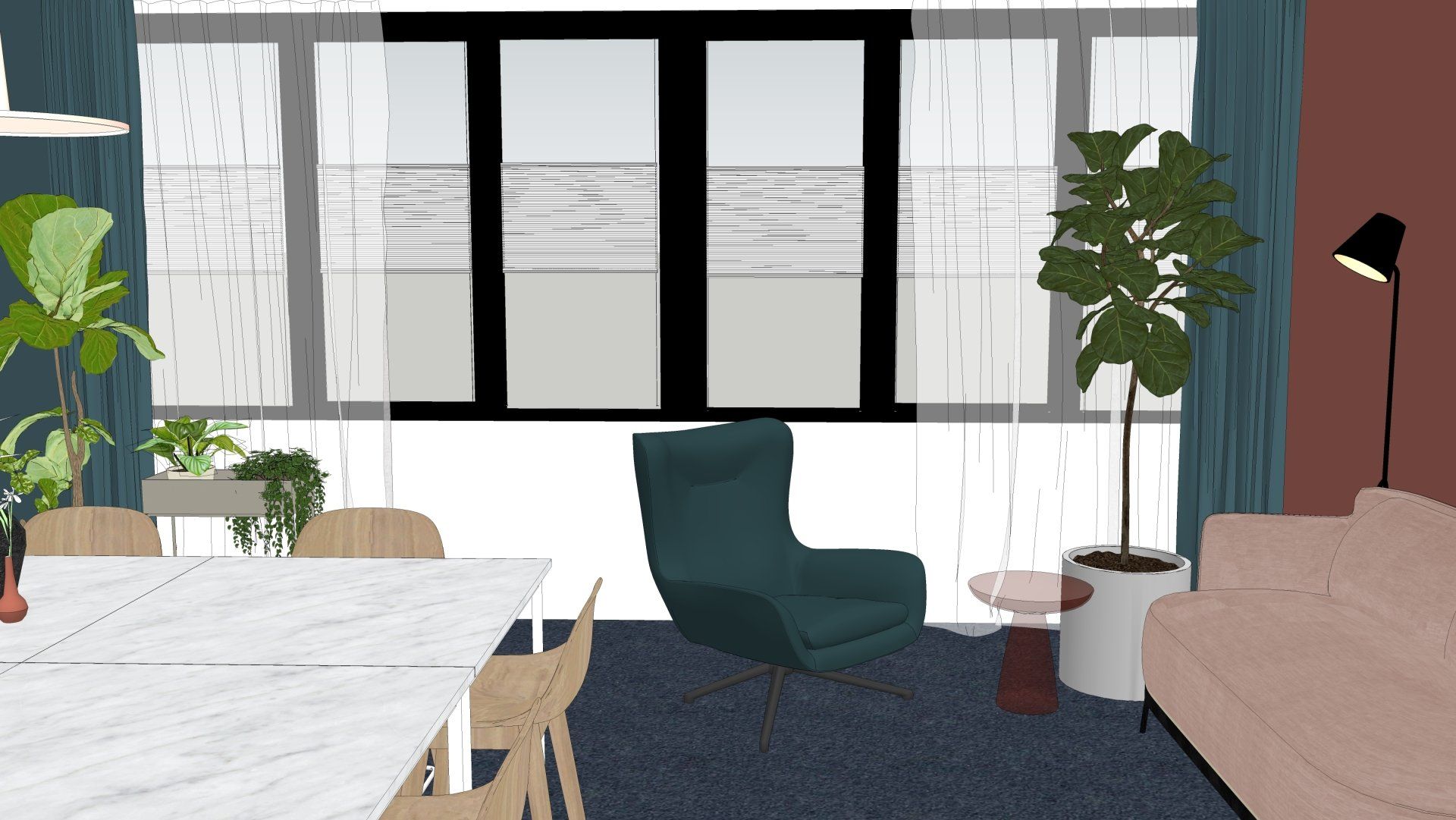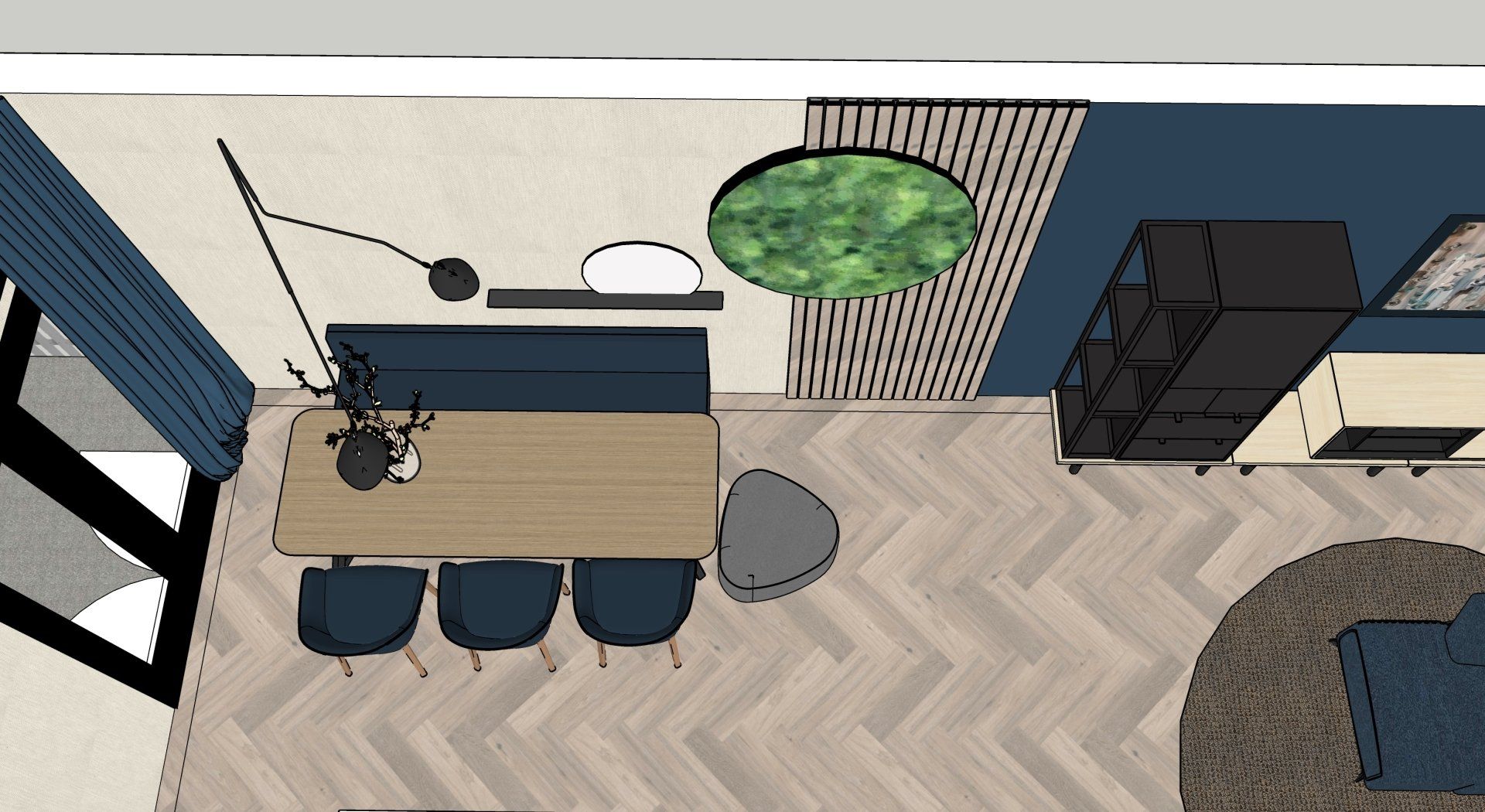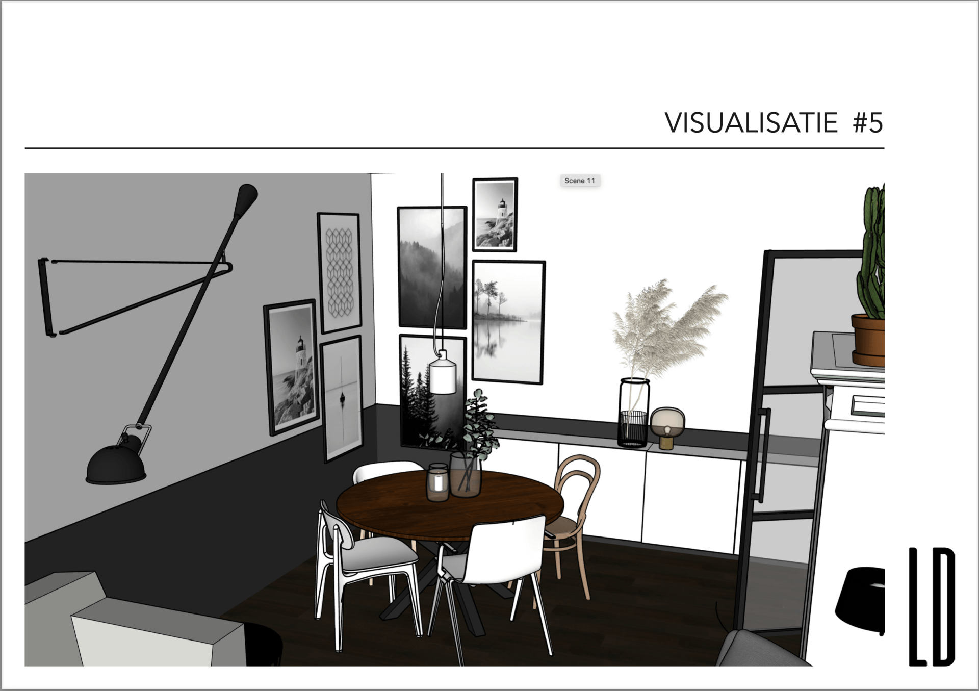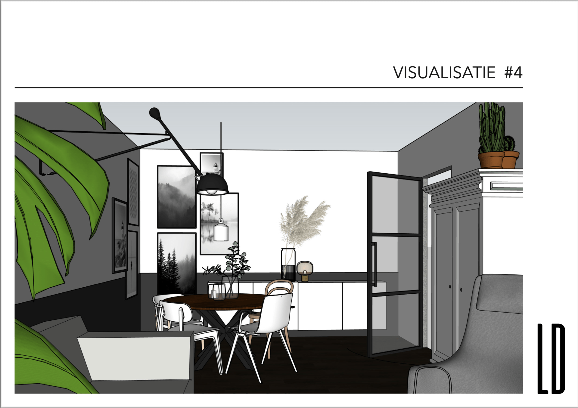 Voor een jong gezin met 3 kinderen in Druten heeft LAUDE een ontwerp gemaakt voor de woon- & eetkamer. Na het bepalen van het moodboard zijn er diverse voorstellen in 2D gedaan. Door het ontwerp uiteindelijk in 3D te presenteren krijg je echt een gevoel hoe het er straks uit komt te zien. Bij het ontwerp is een bijpassende shoppinglist geleverd waarmee de opdrachtgever zelf aan de slag kan om het nieuwe interieur te realiseren.